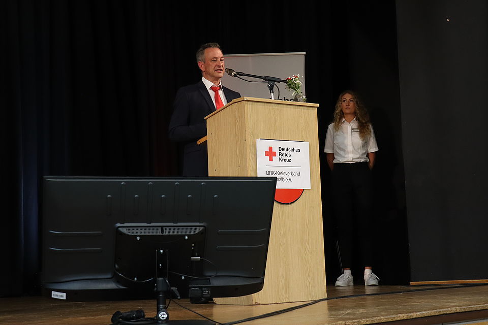 Der nächste Punkt auf der Agenda war der Bericht des Kreisverbandsvorsitzenden. Inhalte waren Zahlen, Daten, Fakten rund um den Kreisverband. Vorgestellt wurden die einzelnen Fachbereiche, die Servicestelle Ehrenamt, das Jugendrotkreuz, Highlights und Aktuelles auch aus den Ortsvereinen. So wurde unter anderem über den Anbau des Ortsvereins Geislingen, die Fahrzeugübergabe des Ortsvereins Harthausen oder auch über die Großübung „Semper Paratus“ im Katastrophenschutz berichtet. Mit Blick in die Zukunft wurden auch kritische Themen wie zum Beispiel das „Hausarztsterben“ mit Sorge angesprochen.